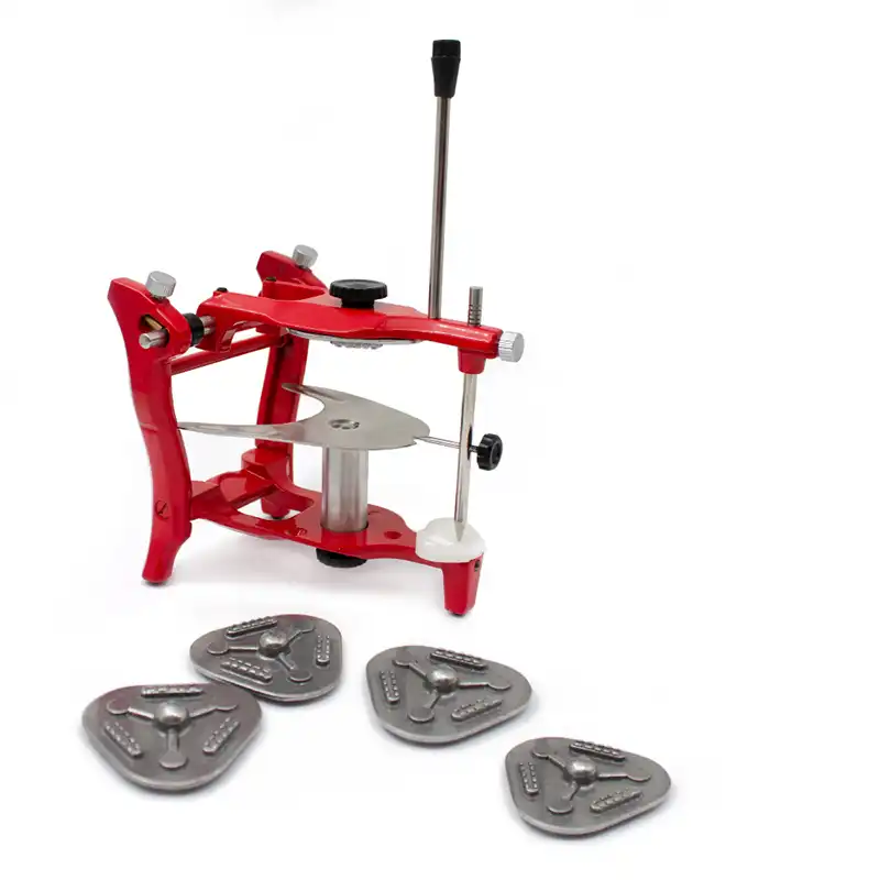Gracias a su diseño con bases de aluminio desmontables, este articulador facilita trabajar con varios modelos a la vez, optimizando el tiempo en el laboratorio y agilizando el encerado.