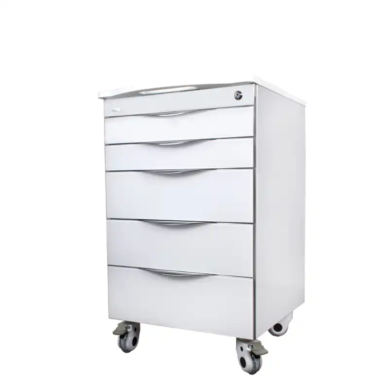 El Carro de Gabinete Dental Bader Cibeles es la solución perfecta para quienes buscan almacenamiento compacto, seguro y resistente en su consulta. Su diseño elegante y funcional con cinco cajones espaciosos y un cajón lateral extensible ofrece la máxima organización del instrumental y materiales clínicos, optimizando el espacio de trabajo.