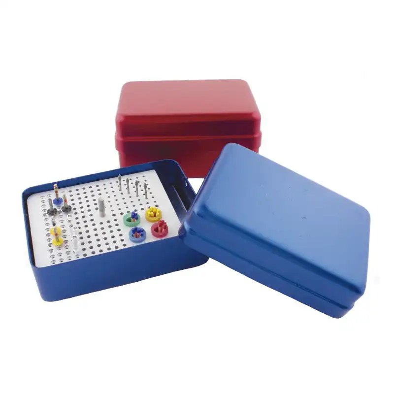 Con espacio para fresas Gates, Peeso, fresas de diamante FG, limas y guta-percha, este endo box asegura una organización eficiente y facilita la esterilización. Disponible en colores rojo y azul, está fabricado con materiales de alta calidad que garantizan resistencia y durabilidad.