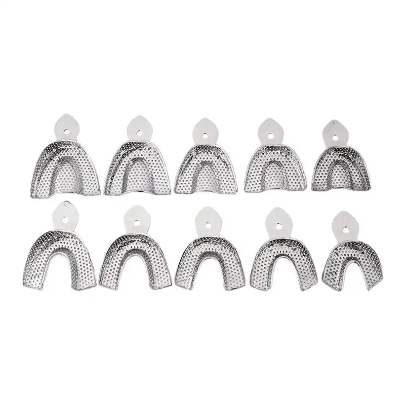 El Kit de 10 Cubetas Rim Lock Perforadas Bader es una solución profesional para la toma de impresiones dentales de alta precisión. Fabricadas en acero inoxidable, estas cubetas cuentan con perforaciones que permiten la adhesión firme del material de impresión, evitando deslizamientos y burbujas de aire.