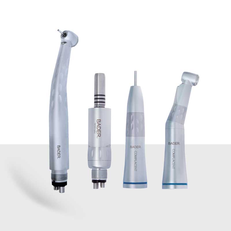 - Pieza de mano Complacent: 22.000-40.000rpm y rodamientos cerámicos. Transmisión 1:1. Spray interno.