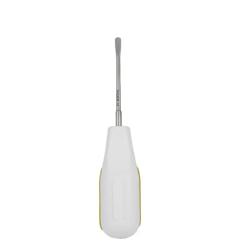 El diseño recto y ergonómico proporciona al dentista un mejor control y permite aplicar una fuerza distribuida, ayudando a separar el diente de su ligamento periodontal sin dañar en exceso el hueso y los tejidos circundantes. Este luxador es ideal para procedimientos en los que es necesario movilizar dientes grandes de manera controlada y con menos riesgo de trauma para los tejidos, favoreciendo una extracción más cómoda y segura.