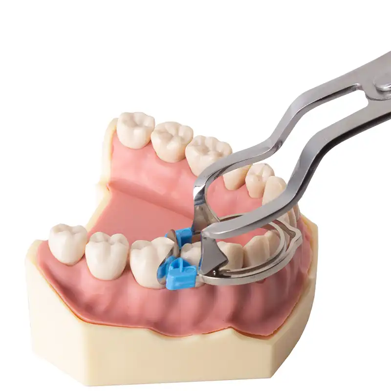 - Utilice pinzas dentales para abrir el anillo y colóquelo en la boca.
