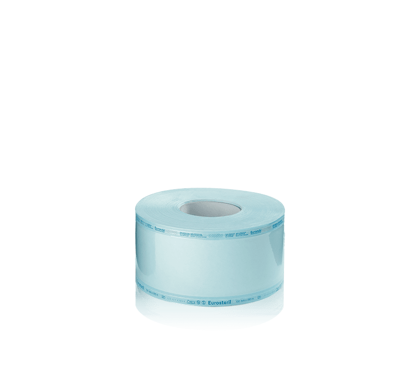 Rollos de esterilización Eurosteril fabricados con papel médico de gran gramaje (60g / m2) y una doble capa de film de poliéster / polipropileno celeste que mantiene la durabilidad de la esterilidad del instrumento hasta 6 meses.