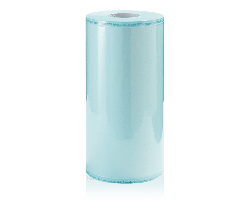 Rollos de esterilización Eurosteril fabricados con papel médico de gran gramaje (60g / m2) y una doble capa de film de poliéster / polipropileno celeste que mantiene la durabilidad de la esterilidad del instrumento hasta 6 meses.