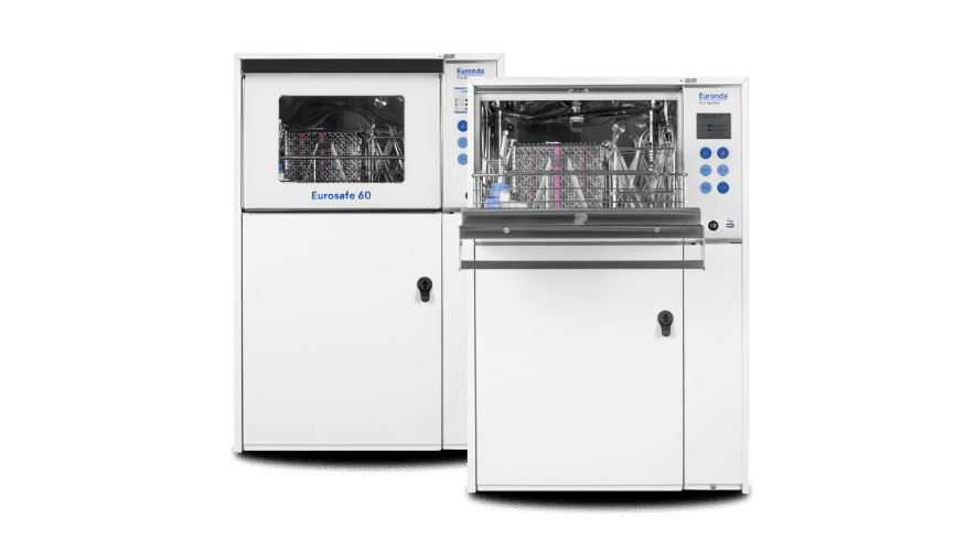 Termodesinfectadora Eurosafe 60 con 2 bombas dosificadoras. Depósito de 60 litros. Interfaz amigable 40 ciclos programados + posibilidad de personalizarlos. Trazabilidad completa y segura: todos los datos se pueden guardar en un USB y transferir a una computadora.