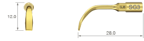 Modelo: SG3 – Nivelación de la cresta alveolar o escisión ósea. • POTENCIA [SURG] 80% • Revestimiento de TiN • Punta con borde de espátula de tres lados • Instrumento de un solo filo.